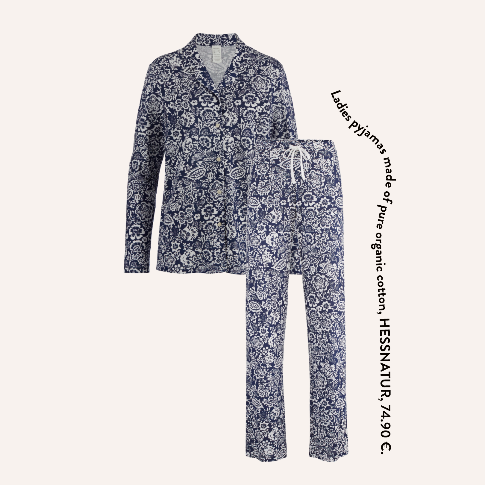 These trendy pajamas are available in different variations as Mix & Match. The pants are also available in short length. The sustainable pajamas are currently available in SALE for 53.90 Euro.